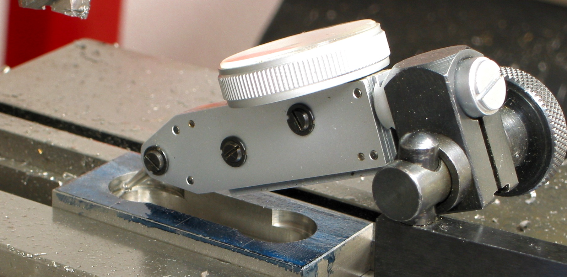 Getting close to finishing ... the slipper grooves were next ...set the endmill in the center took light cuts ... flipped it over and repeated until the dimension was .703". Notice the crosshead in the background ... need to keep the vice jaws straight.