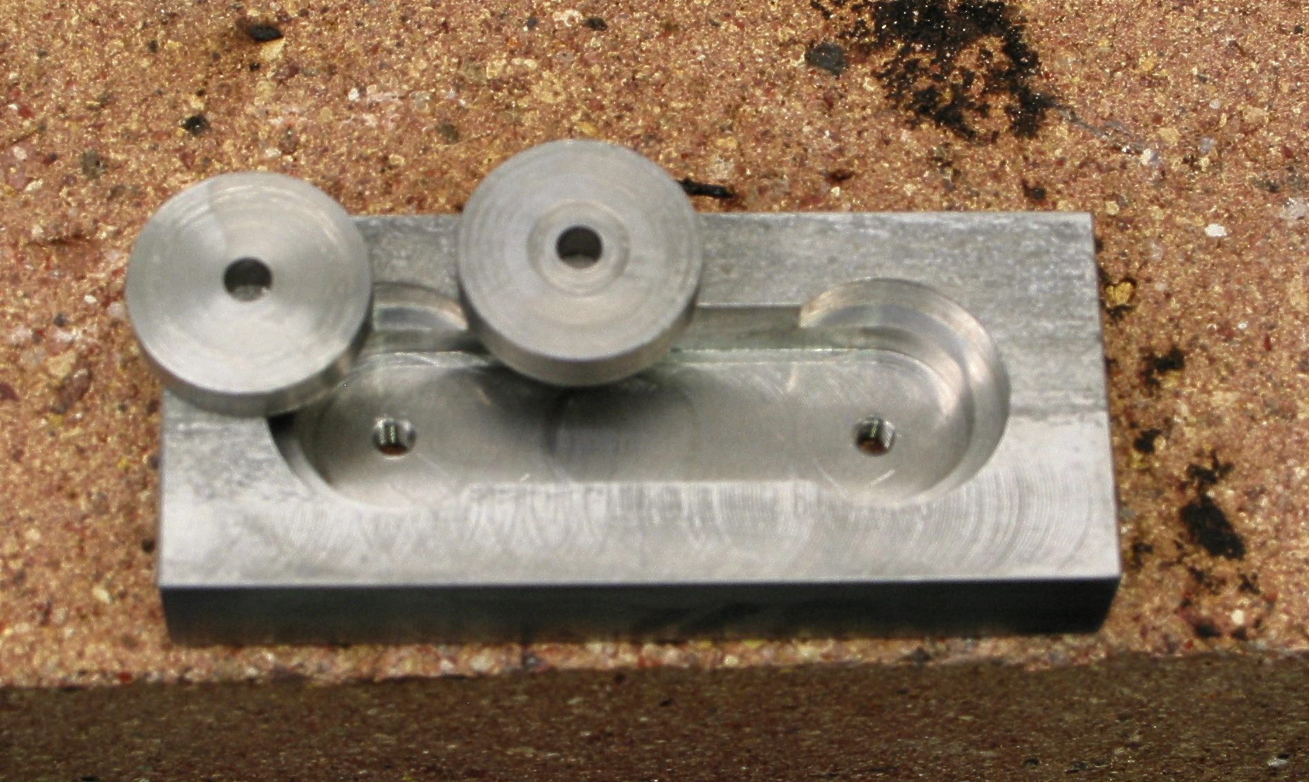 Notice that the plugs are little higher than the top surface. This allowed me plenty of room to get the .360" dimension right on. Next operation is cleaning up and milling to dimensions. Then cut in half.