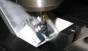 Here is the jig I used to cut the 8° "wings tips" and the 1/4" radius. To get the 8° I used a 3° and a 5° angle blocks. Press them against the vice edge to get a snug fit. Used a cad program to locate the xy coordinates ... drilled then just moved the x axis. Done! Well had to do that 8 times...