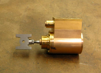 I wanted to use Bronze for the slipper, so I made this jig so that the thickness would be .040" and flat. To do that I faced a piece of round stock, cut it off for a thickness of about .060", milled the edges down for a tight groove fit . Then milled the top surface as shown. Finally sanded the edges for the final .235" dimension.